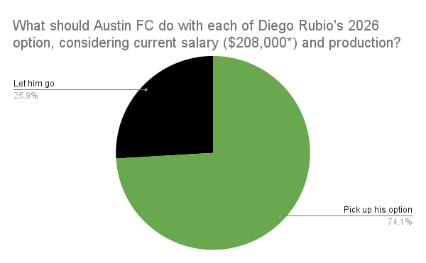 Keeping the "I'd take him on a supplemental" catch phrase among a Slack-connected group of Austin FC fans in mind, Rubio's supplemental spot on the roster, and his ability to play a 9 1/2 role (and having stayed upright for most of the time Brandon Vázquez was injured) was valued by a lot of you.