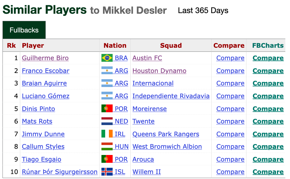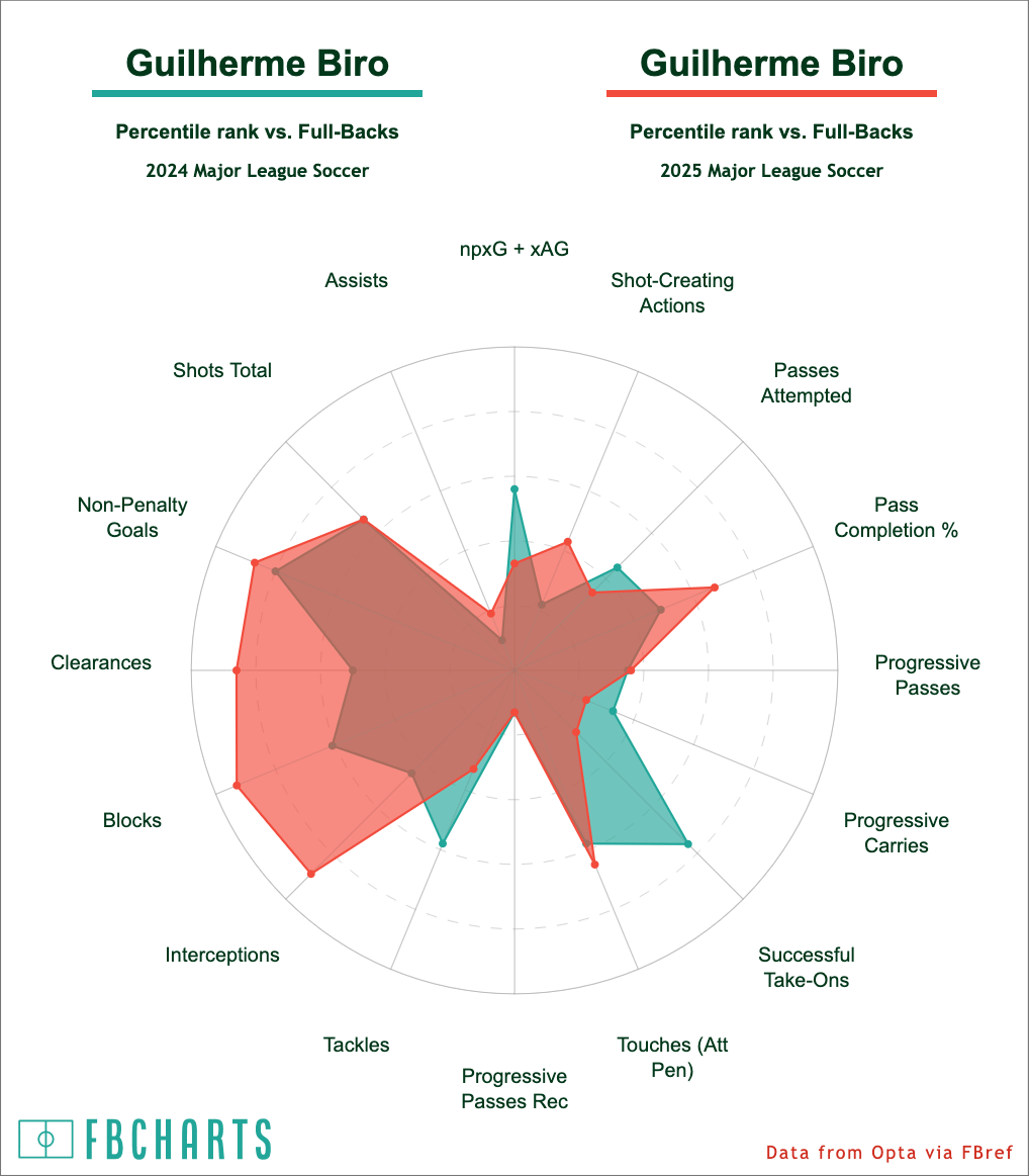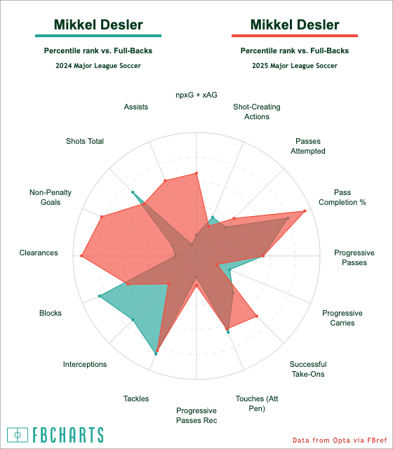 And, of course, while he hasn't had the most conventional route to the All-Star Game, he didn't look out of place in his brief time on the field. While Desler arguably had a bit more growth in his game based on the comparison chart, Austin FC is better set at both fullback spots, comparing this year to last year.