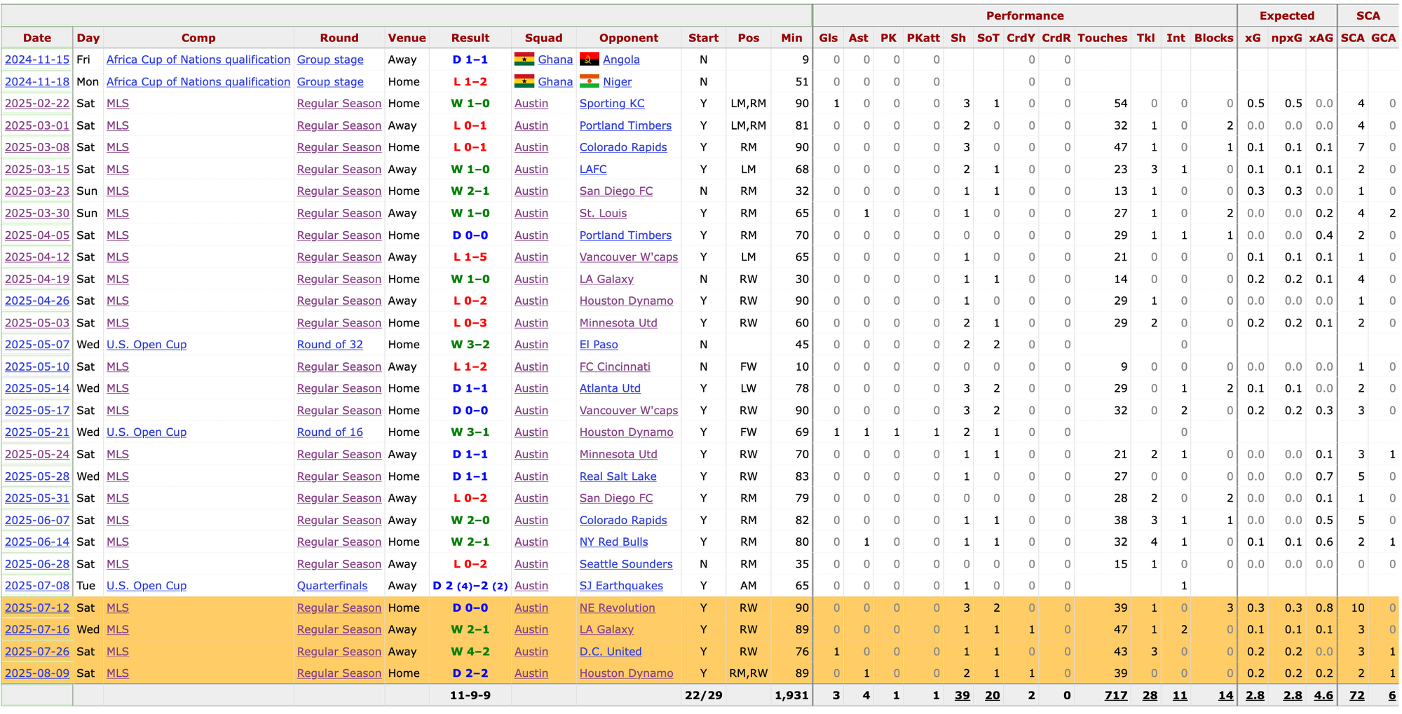 Speaking of recent weeks, look at his uptick in numbers in the last four matches, starting with the one against the Revs.