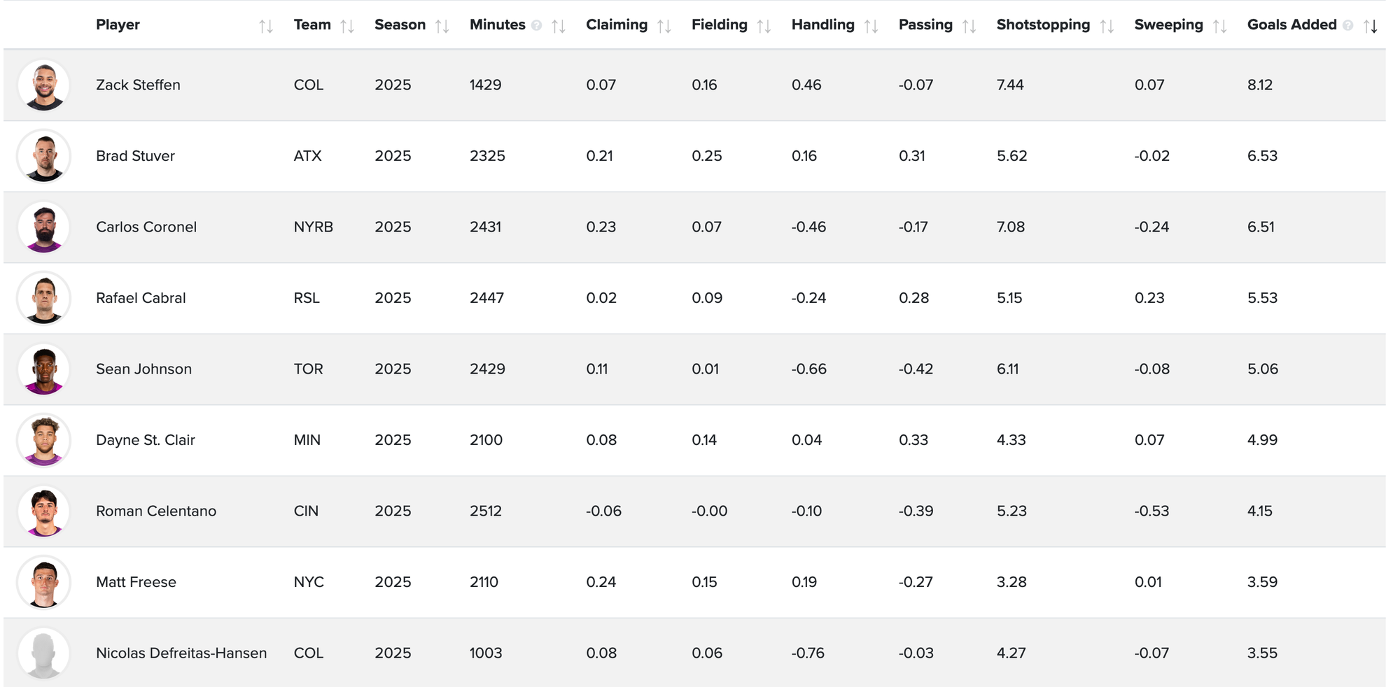 As with the outfield players, the goals added calculation attempts to give a picture of a player's entire on-field value, beyond the advanced goalkeeping metrics that FBref offers (including one that historically favors Stuver.)