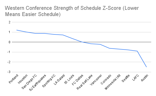 For LAFC and Minnesota, it's about the same. For San Diego and Portland, it's appreciably harder.